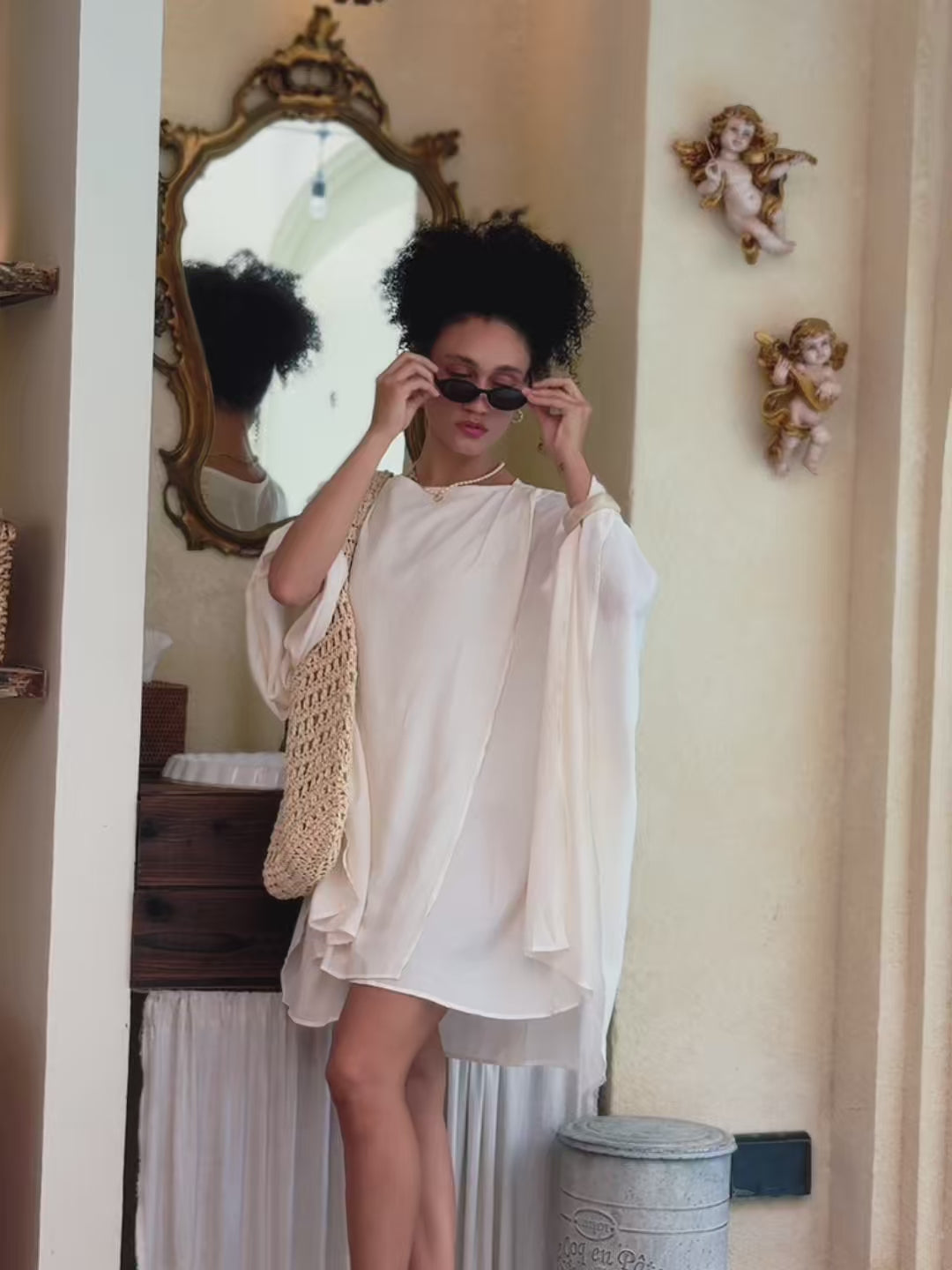 Beach Mini Kaftan Dress - Ivory White