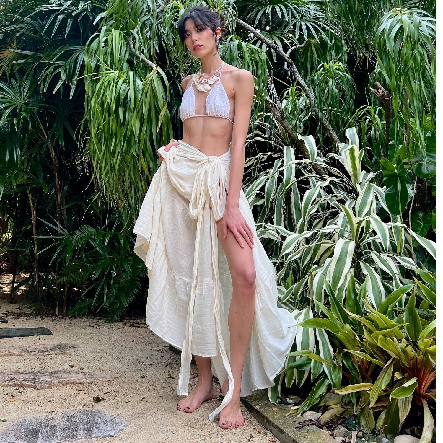 Matera Off-White Crinkle Cotton Wrap Skirt