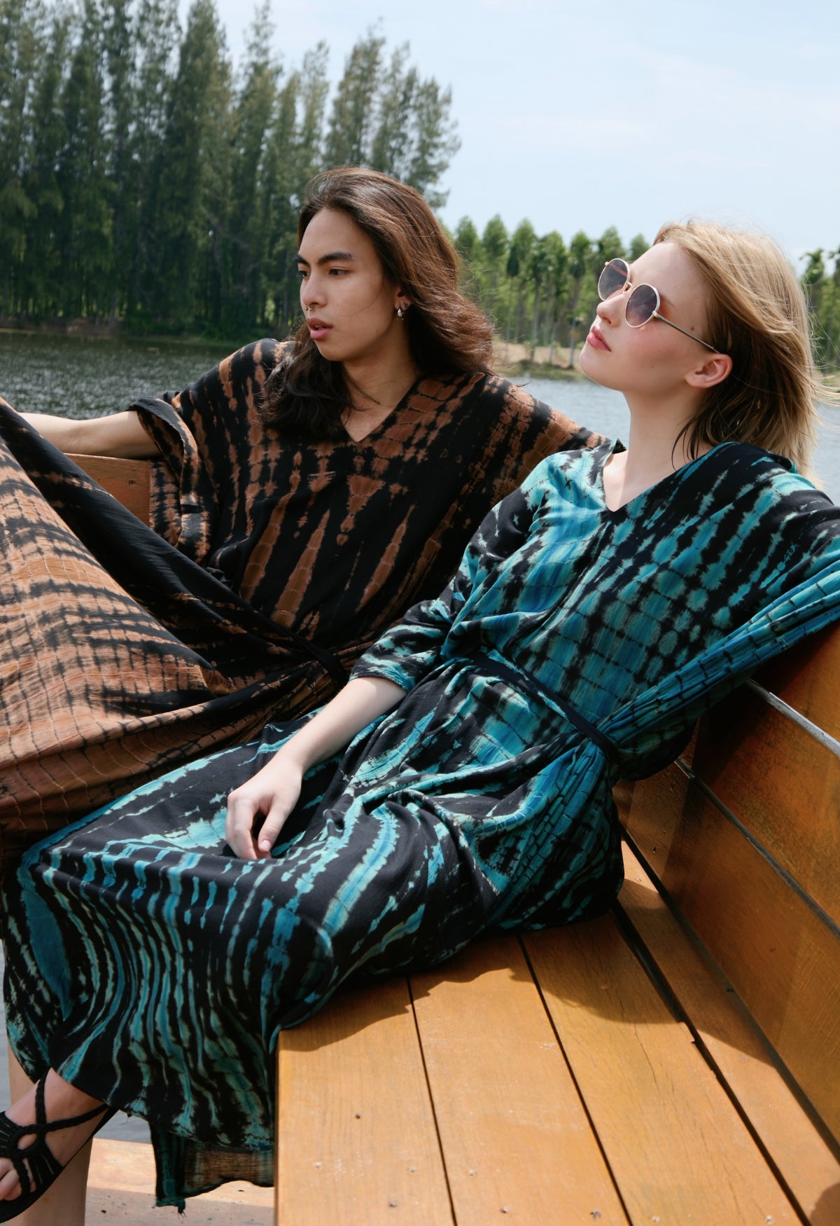 Maya Tie Dye Kaftan Kimono - Black/Blue