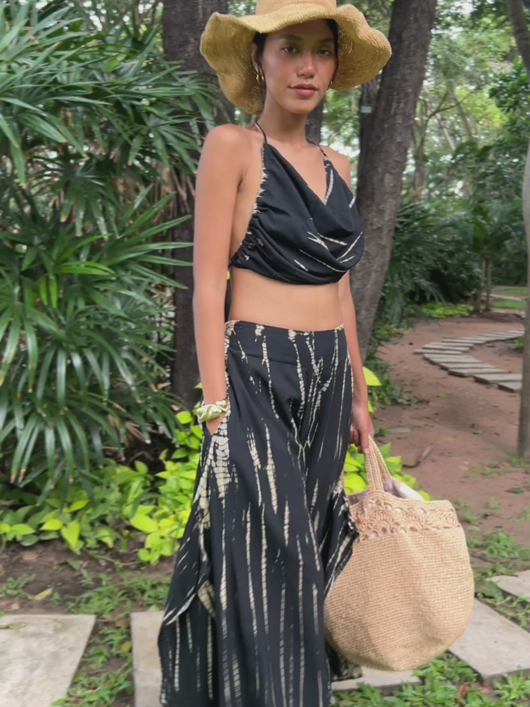 Introducing our bohemian wide-leg pants – the Maya Tie-Dye Samurai trousers. Crafted with lightweight and airy fabric, these pants are designed to make you look and feel exceptional. With their loose, wide-leg fit, they provide comfort and style year-round. For a complete look, pair them with our Maya Tie dye kimono robe and Maya boho crop bra, perfect for yoga sessions, beach days, festival fun, or everyday wear. Plus, they are both sustainable and lovingly handmade.