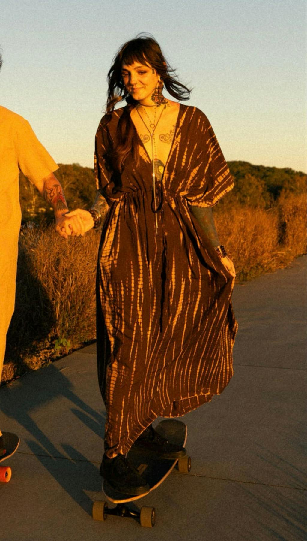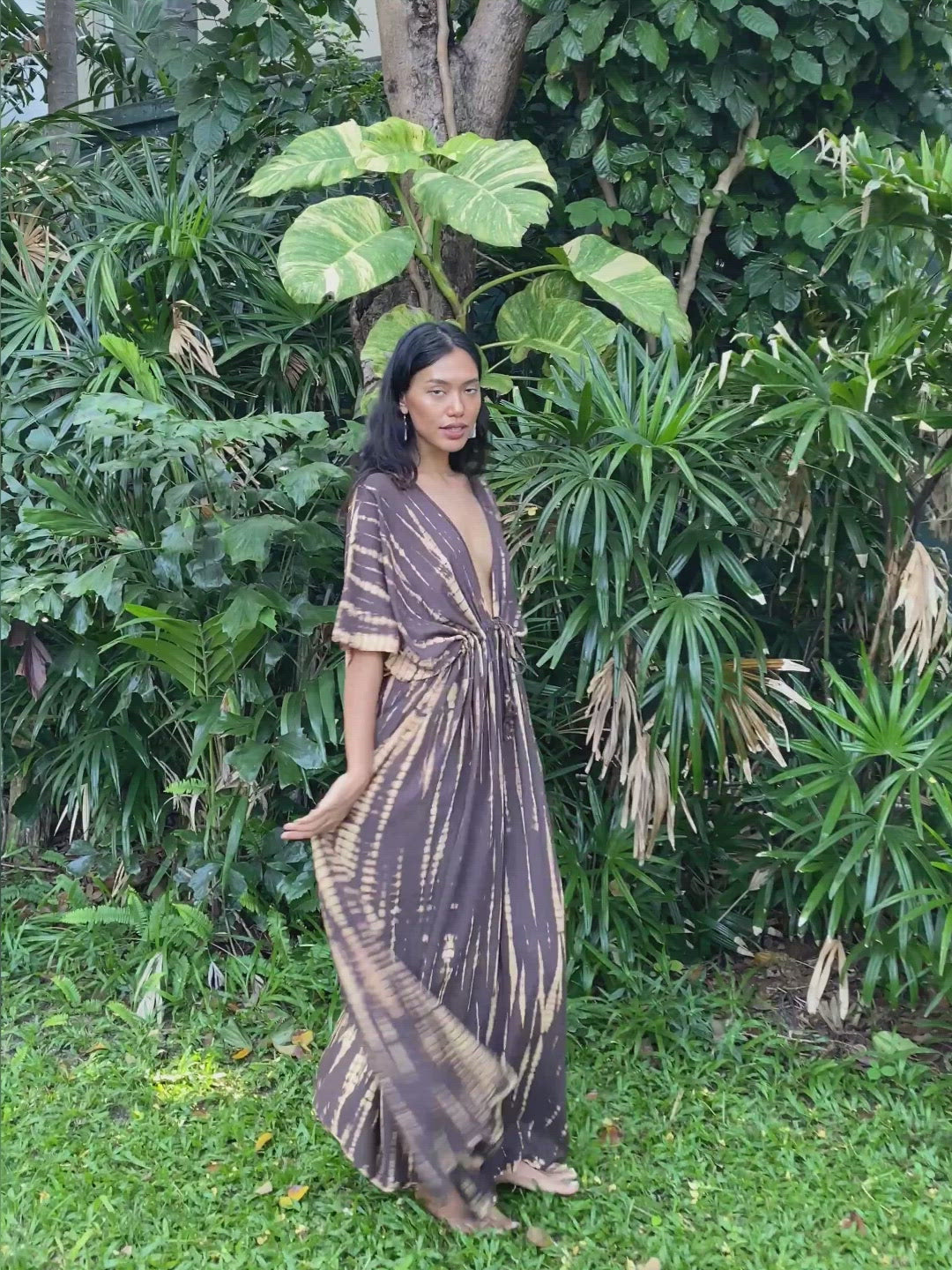 Goddess Tie Dye Kaftan Maxi Dress - Brown