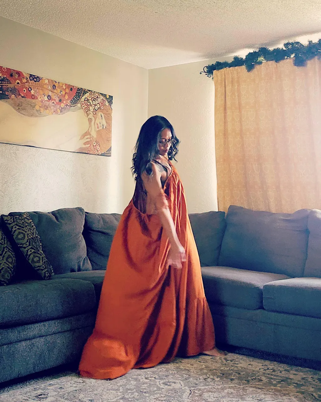 This dress is designed to be loose, flowy, and oversized. Great if you love an easy drape. Less ideal if you prefer a fitted look.