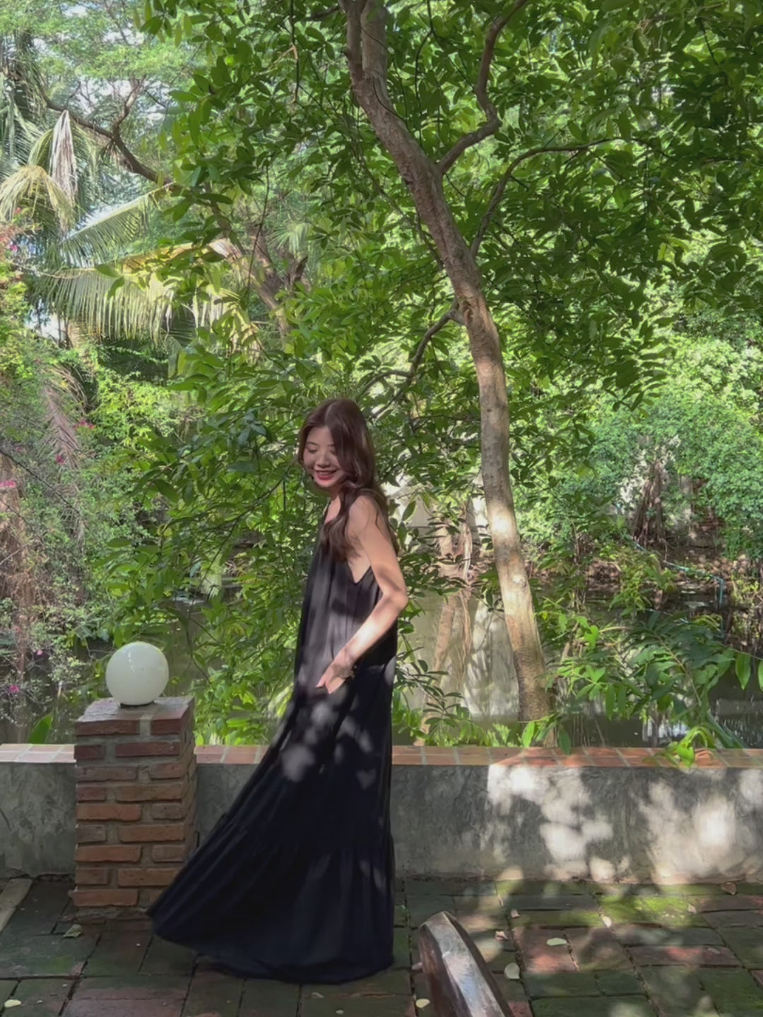 Discover our limited edition Olivia Maxi Dress. This dyed black maxi dress perfectly blends style, comfort, and versatility, effortlessly transitioning from day to night with its maxi length. It features an adjustable scoop back, rope detail straps, and ruffles for a chic vacation vibe.