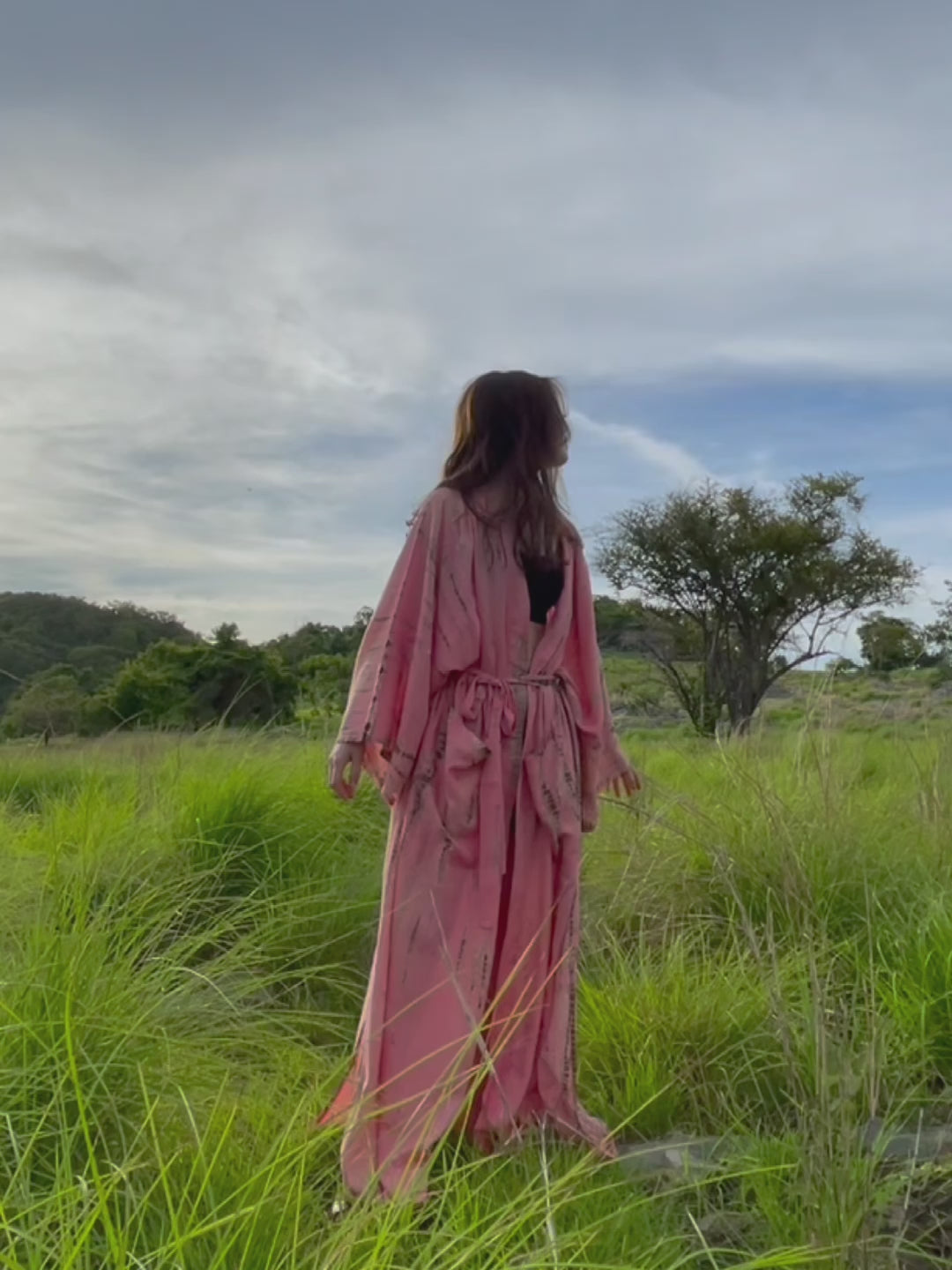 Lightweight and breathable with its gorgeous oversized length, the Swan - Peach Pink Kimono Robe is a must-have with its vibrant color. This relaxed design features a gorgeous tie-dye print paired with a chic waist tie. side pockets and elegant side slits. Layer it on over your favorite outfit for an effortless pop of color.