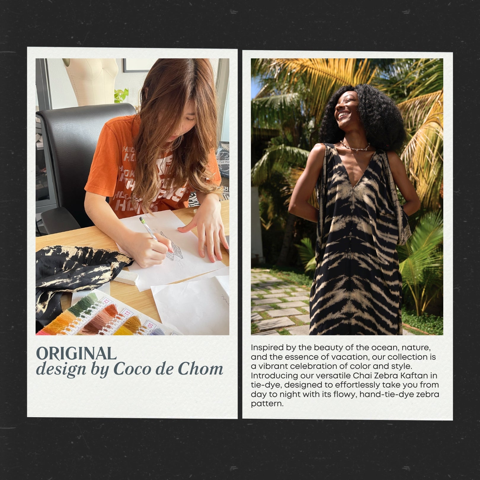 Discover our Chai Zebra Tie-dyed V-neck caftan - the perfect mix of casual and resort style. With a loose-fit dress, long-cut, and cold shoulder design, this lightweight dress is effortless and versatile - wear it as a cold-shoulder dress or a loose, long kaftan. Hand-tie-dyed in our unique zebra pattern and made with ethical, sustainable, and eco-friendly practices, our one-of-a-kind flowy designs are perfect for any occasion, from a cruise to a beach party.