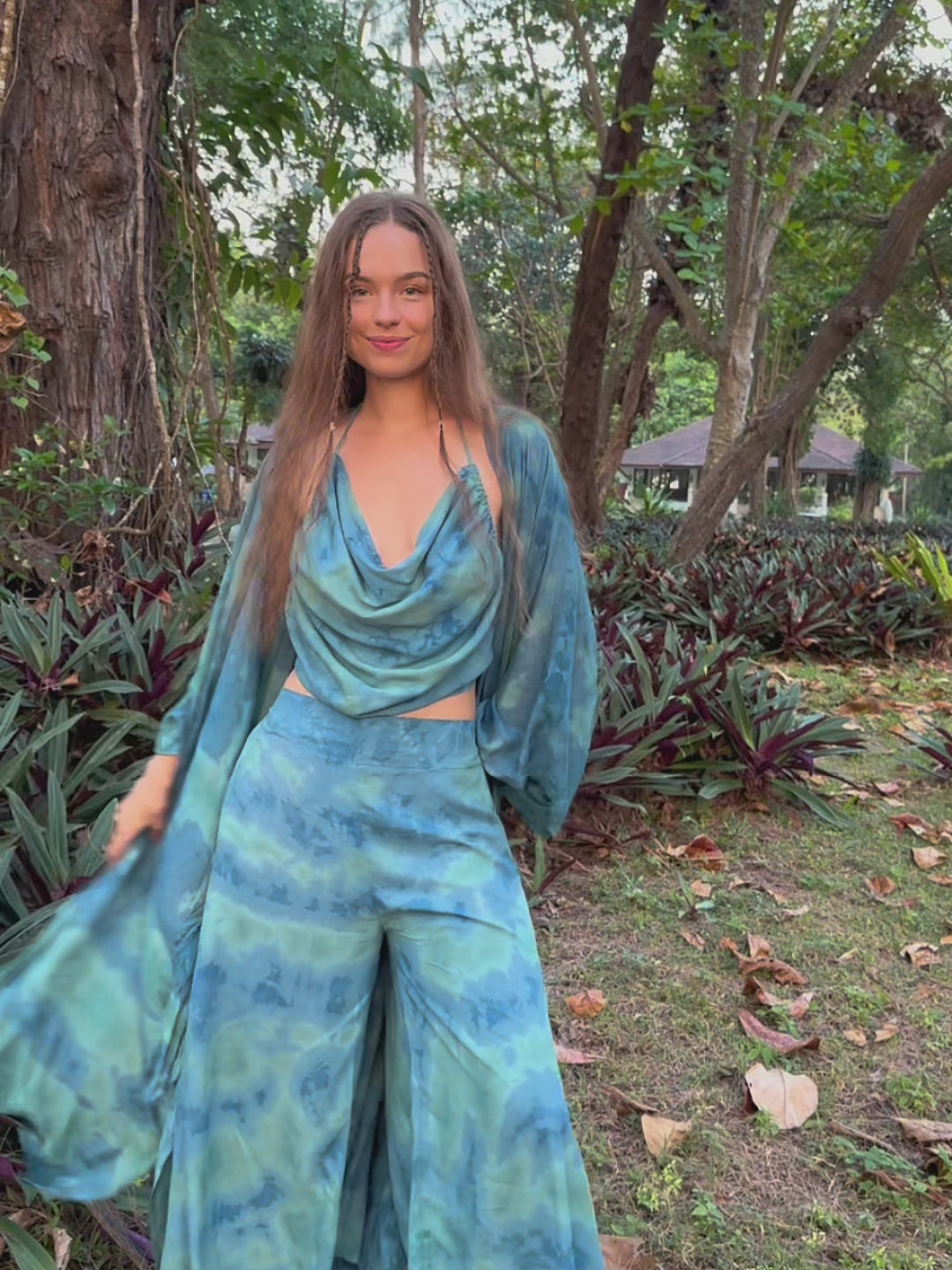 Introducing our new handcrafted Maya Crop Top in Hand Tie dye Marble , where playful style, bohemian vibes, and comfort come together effortlessly. This lovely piece is made from soft, lightweight fabric that's perfect for any occasion, whether it's yoga day, a music festival, or a beach vacation. Complete your look with the Kimono robe and Maya Boho Wide Leg Pants for head-to-toe vibrancy. Plus, the adjustable sleeve cinched crop top keeps you in fashion all year round. It's the perfect choice for staying stylish, no matter the season!