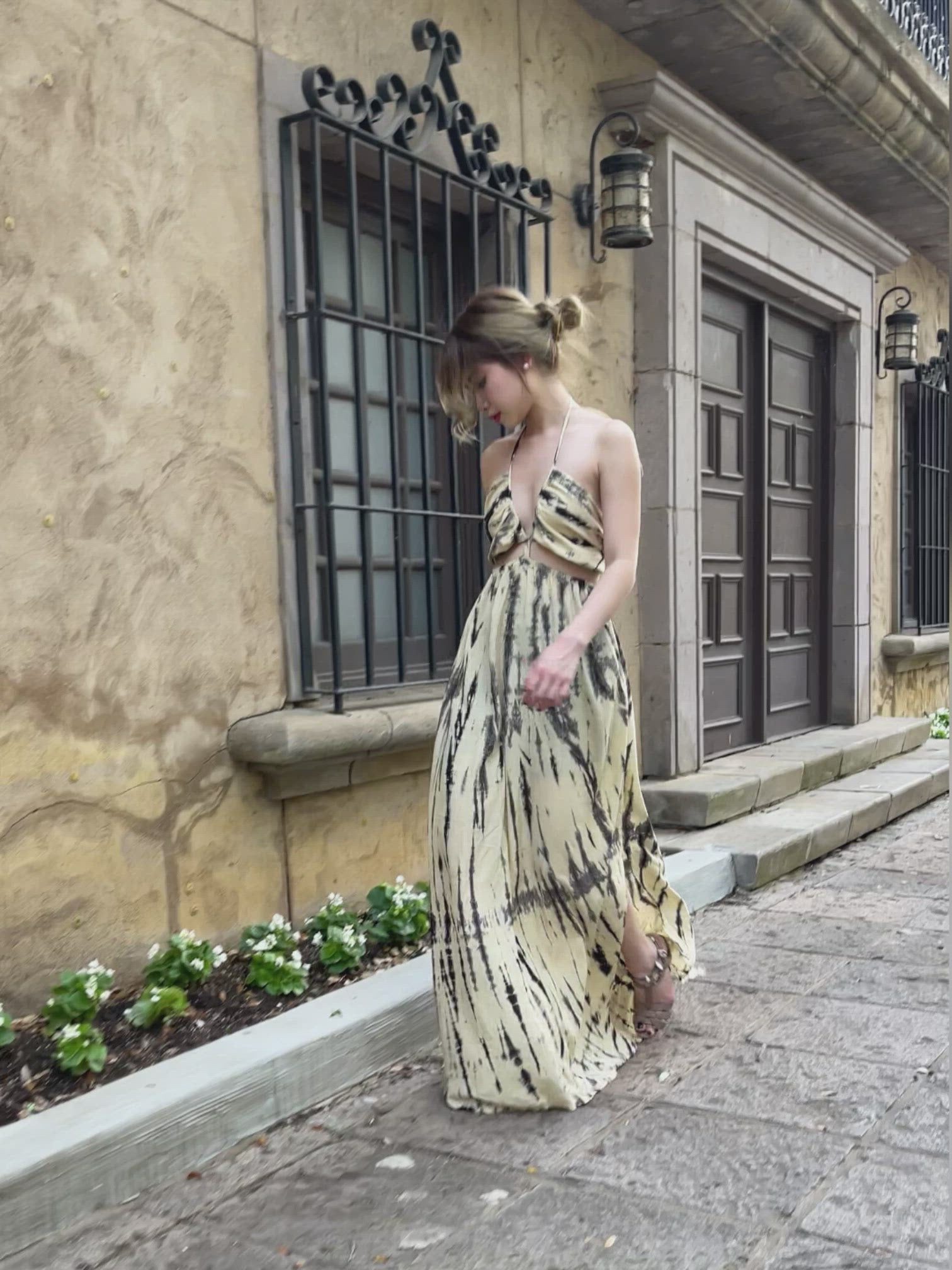 Selena Cut Out Dress in Tie dye - Cream