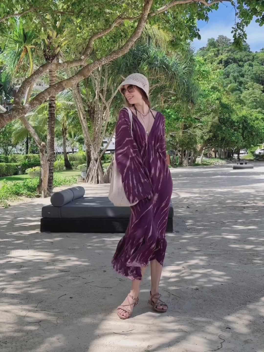 Crafted in 100% soft, lightweight rayon, this dress features flawless tie-dye patterns and is perfect for tropical beachside vacations, honeymoons, and more.